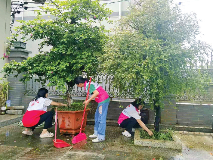 “电池要放进红色桶!”在湖镇镇下村村,工作人员通过迷你分类垃圾桶等教具,开展实景互动教学,提升村民垃圾分类实际操作能力。种下绿植,添上美丽。石坝镇三嘉村、长宁镇徐田村、泰美镇车村村、杨村镇石滩村等地积极开展“绿植入户”行动。志愿者为村民赠送双色茉莉等绿植苗株,并教授村民种植和日常护理方法。同时,协助村民清扫庭院、设计庭院,进一步宣传“美丽庭院”建设理念,激发村民参与热情。