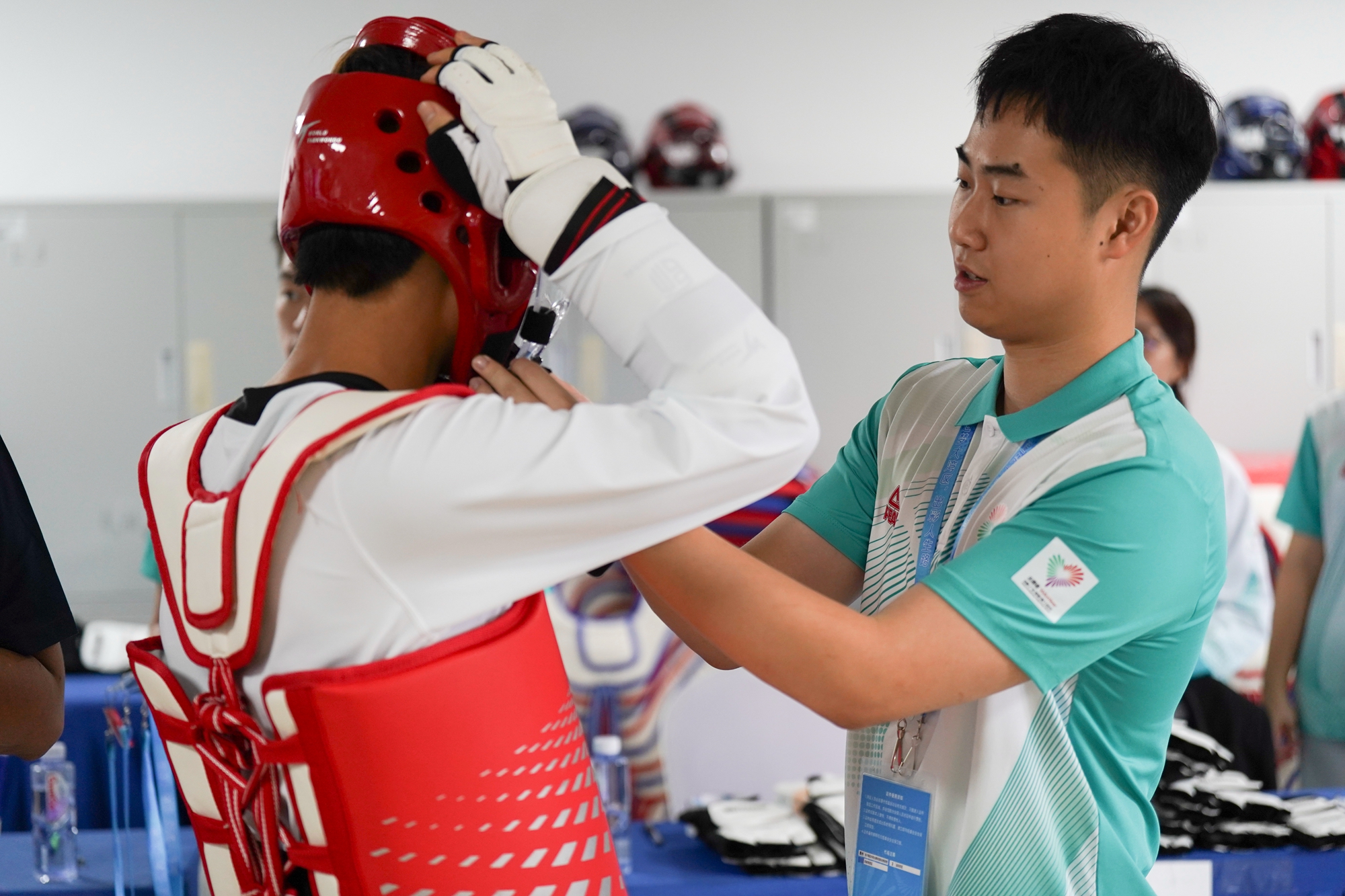 9月10日,全国第十二届残疾人运动会暨第九届特殊奥林匹克运动会(简称“残特奥会”)跆拳道比赛在惠州体育馆开赛。这是惠州赛区首个开赛的残特奥项目,944名志愿者在赛场内外全面上岗,全方位保障赛事顺利进行。